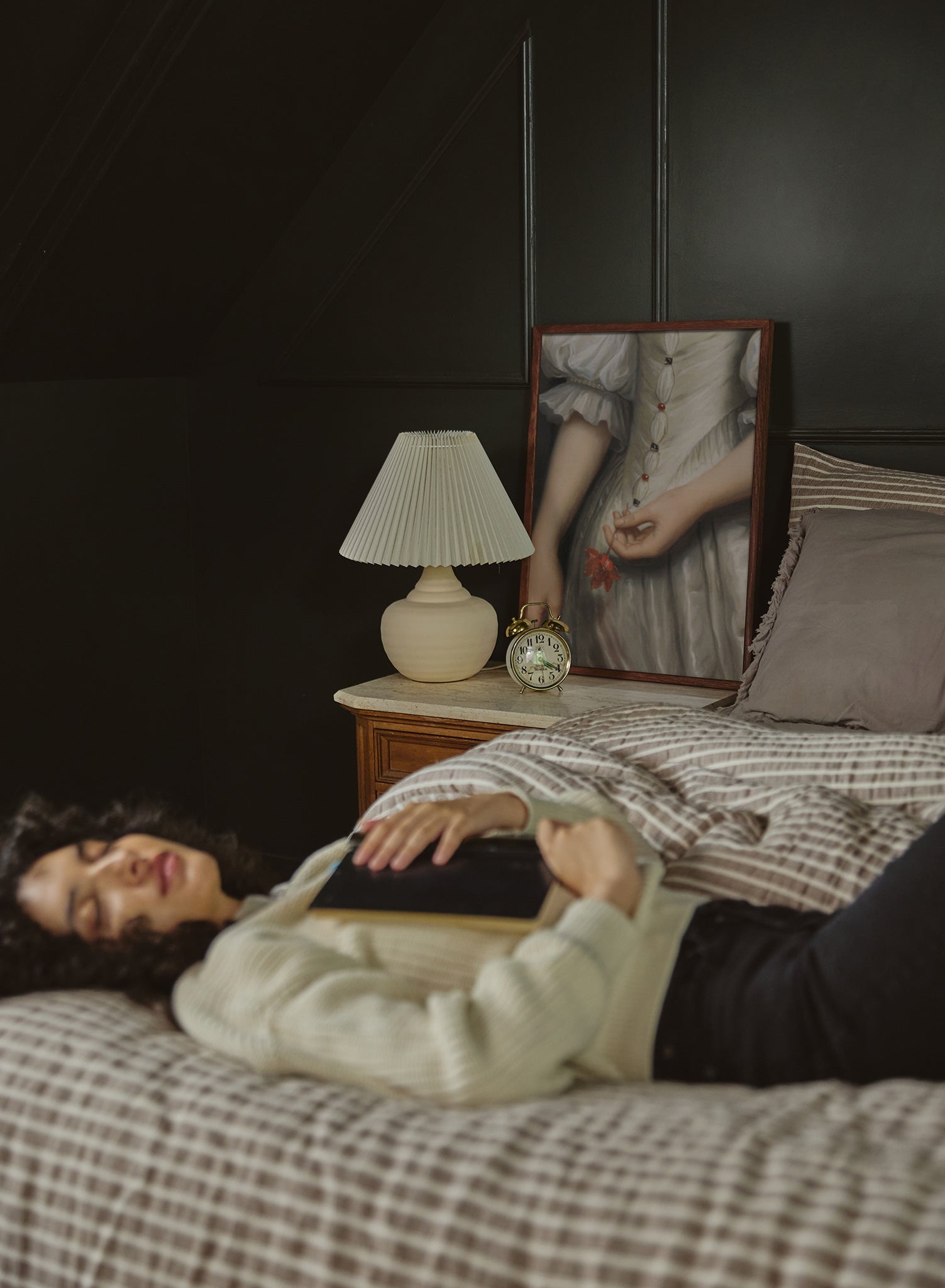The composition, though simple, creates a deeply evocative and graceful portrayal of a quiet, intimate moment.